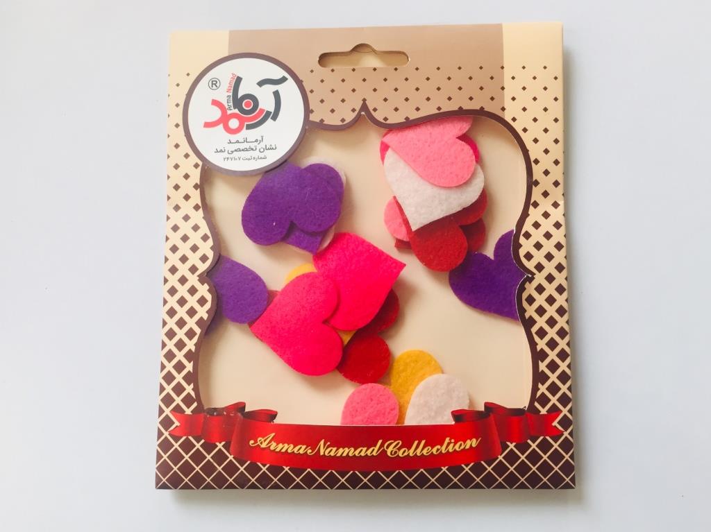 این بسته حاوی 21 عدد الگوی نمد طرح قلب 3 سانتیمتری است.