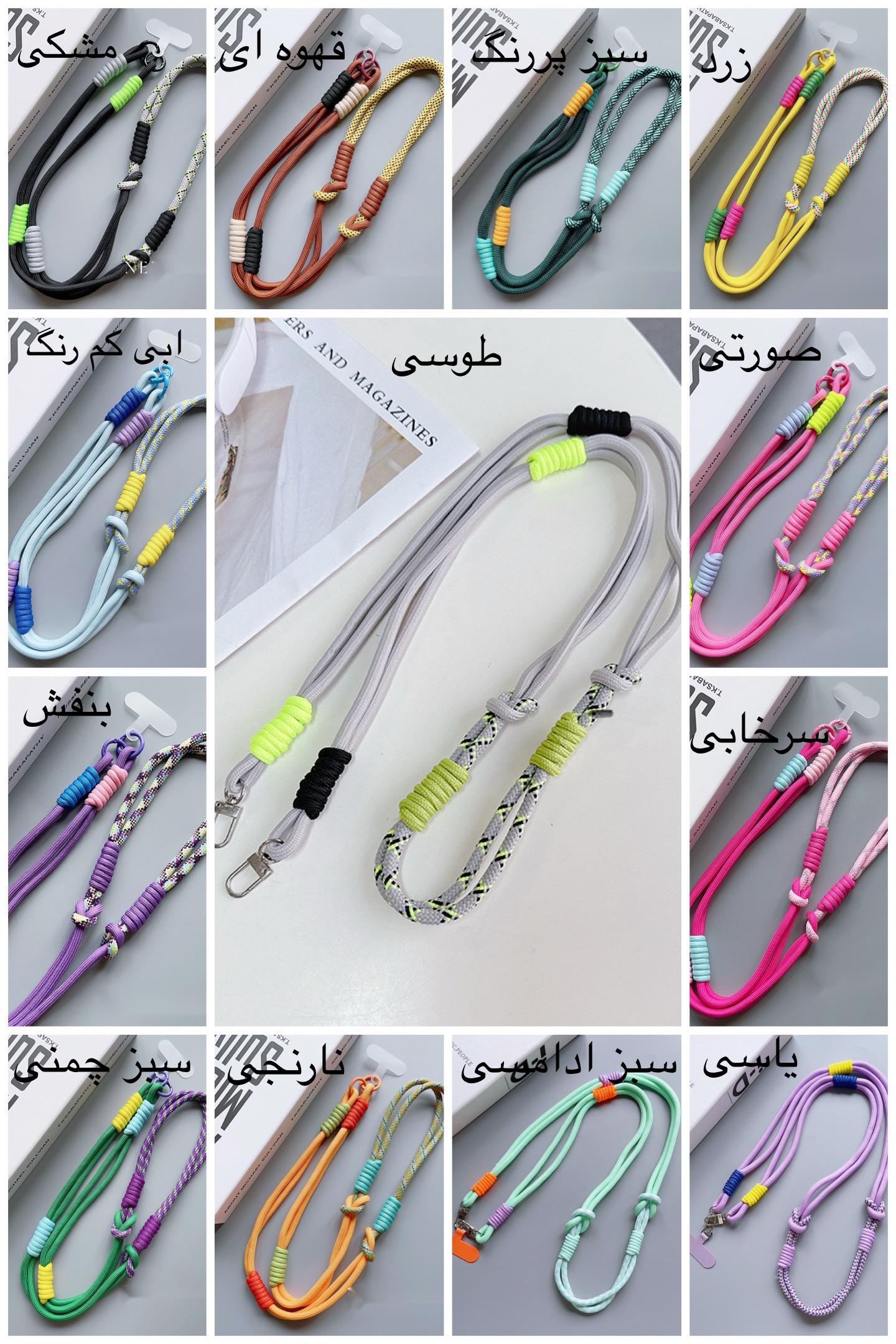آبی کم رنگ, بنفش, زرد, سرخابی, صورتی, طوسی, قهوه ای, مشکی, نارنجی, یاسی, سبز آدامسی, سبز پررنگ, سبز چمنی