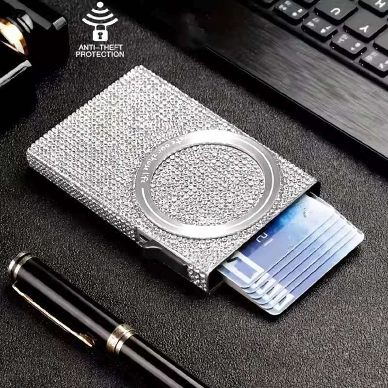جا کارتی نگین دار برند ژوس، اورجینال، مگنتی، ظرفیت 5 الی 7 کارت، مکانیزم کشویی، دارای پک و بسته بندی، دارای تکنولوژی جلوگیری از سوختن کارت