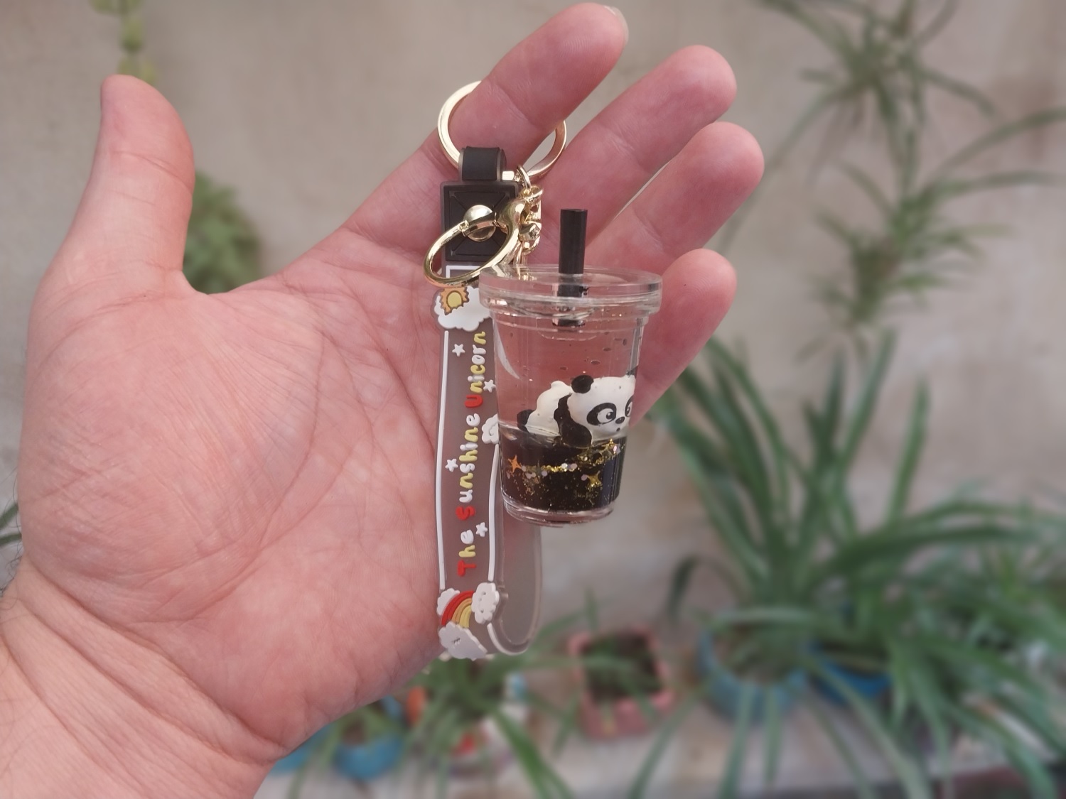 داخل مایع جاکلیدی، عروسک پاندا قرار دارد.