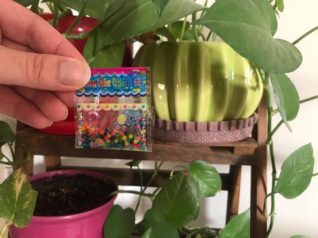مهمترین استفاده آن در تزئین گلدان هست که پس از حجیم شدن می توان گیاه ریشه دار را خوب شست و خاک و گل اطراف ریشه را تمیز کرد و به ظرف بلوری که داخل آن خاک های ژله ای هست منتقل کرد.