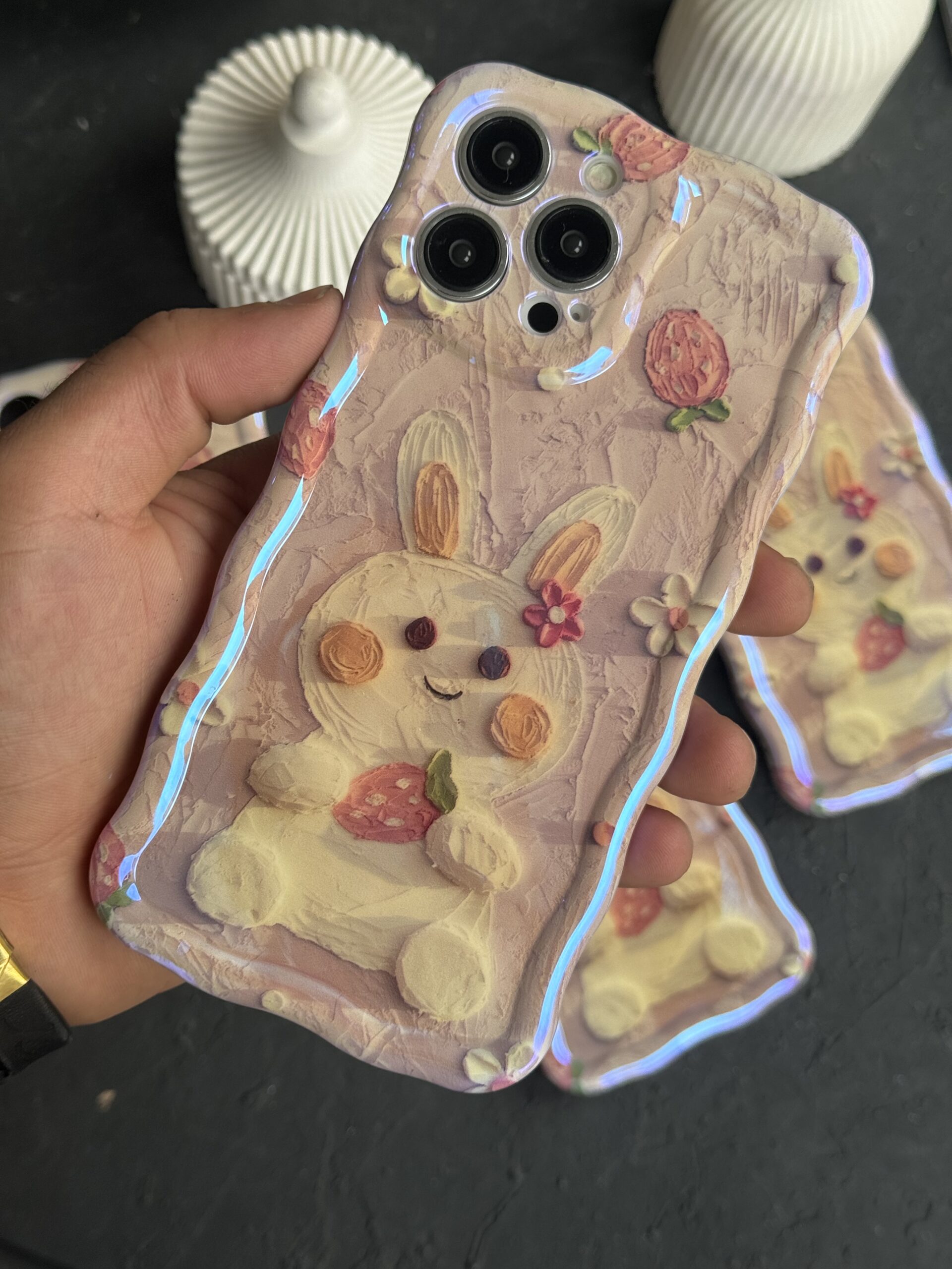 قاب آیفون خرگوش آبرنگی سه بعدی