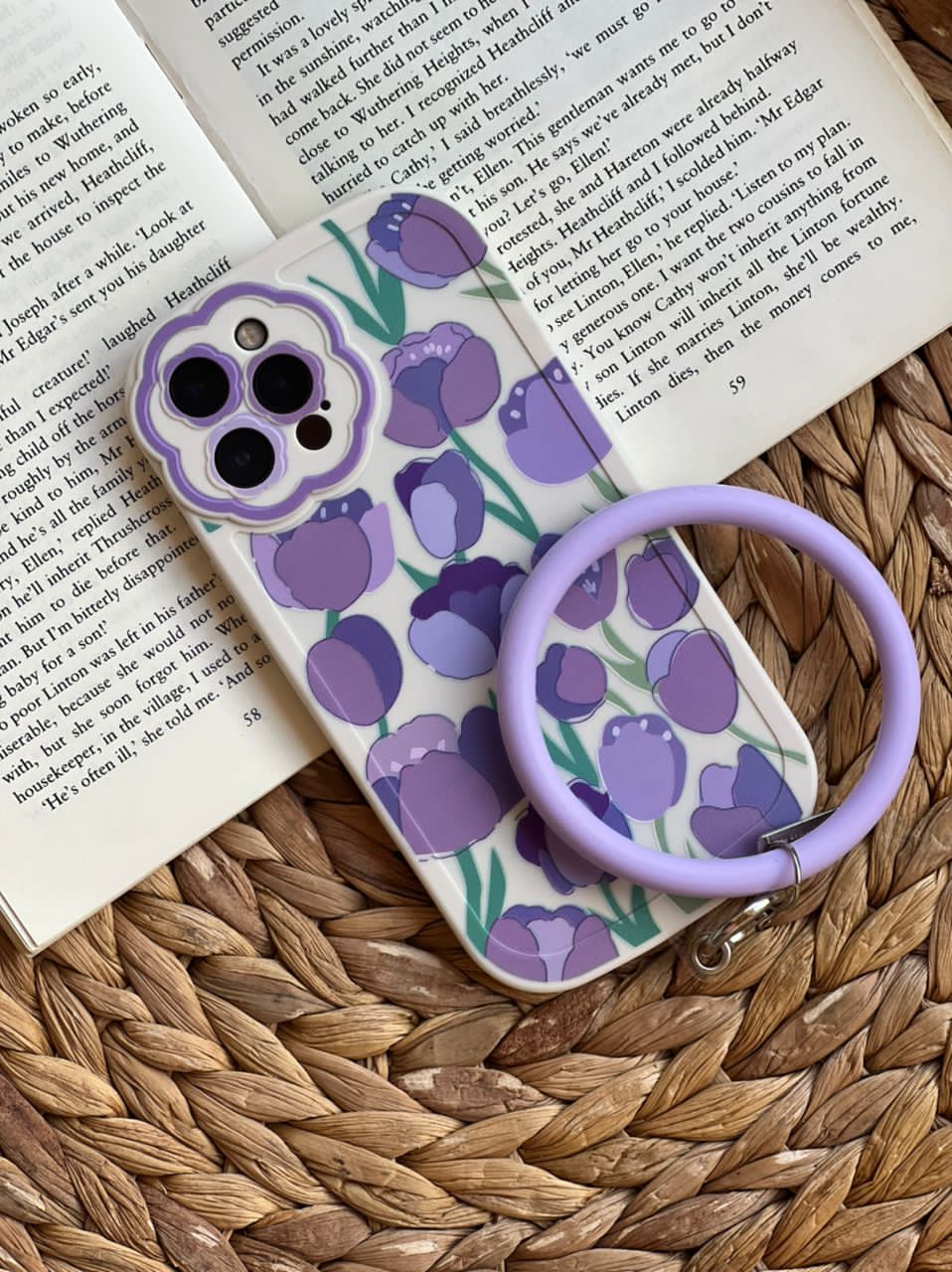 قاب آیفون طرح گل لاله ژینا بنفش + حلقه ست