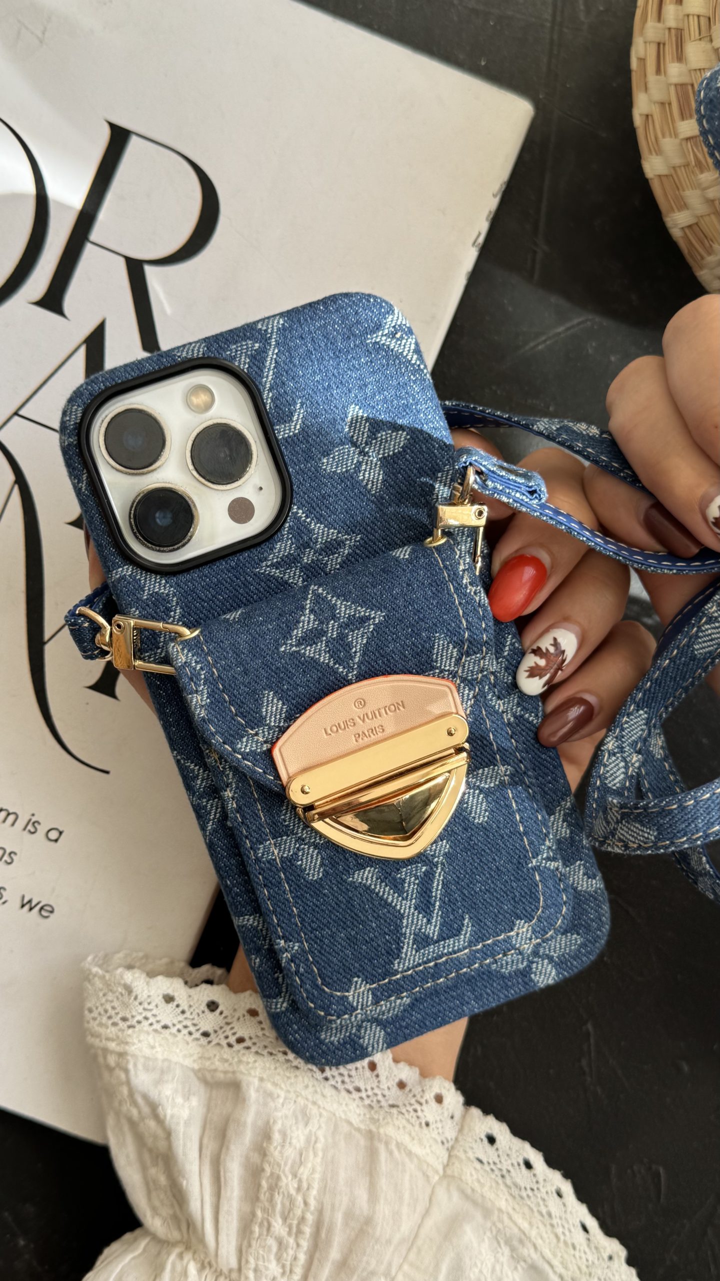 قاب آیفون لویی ویتون جین استایل جاکارتی دار + بندست