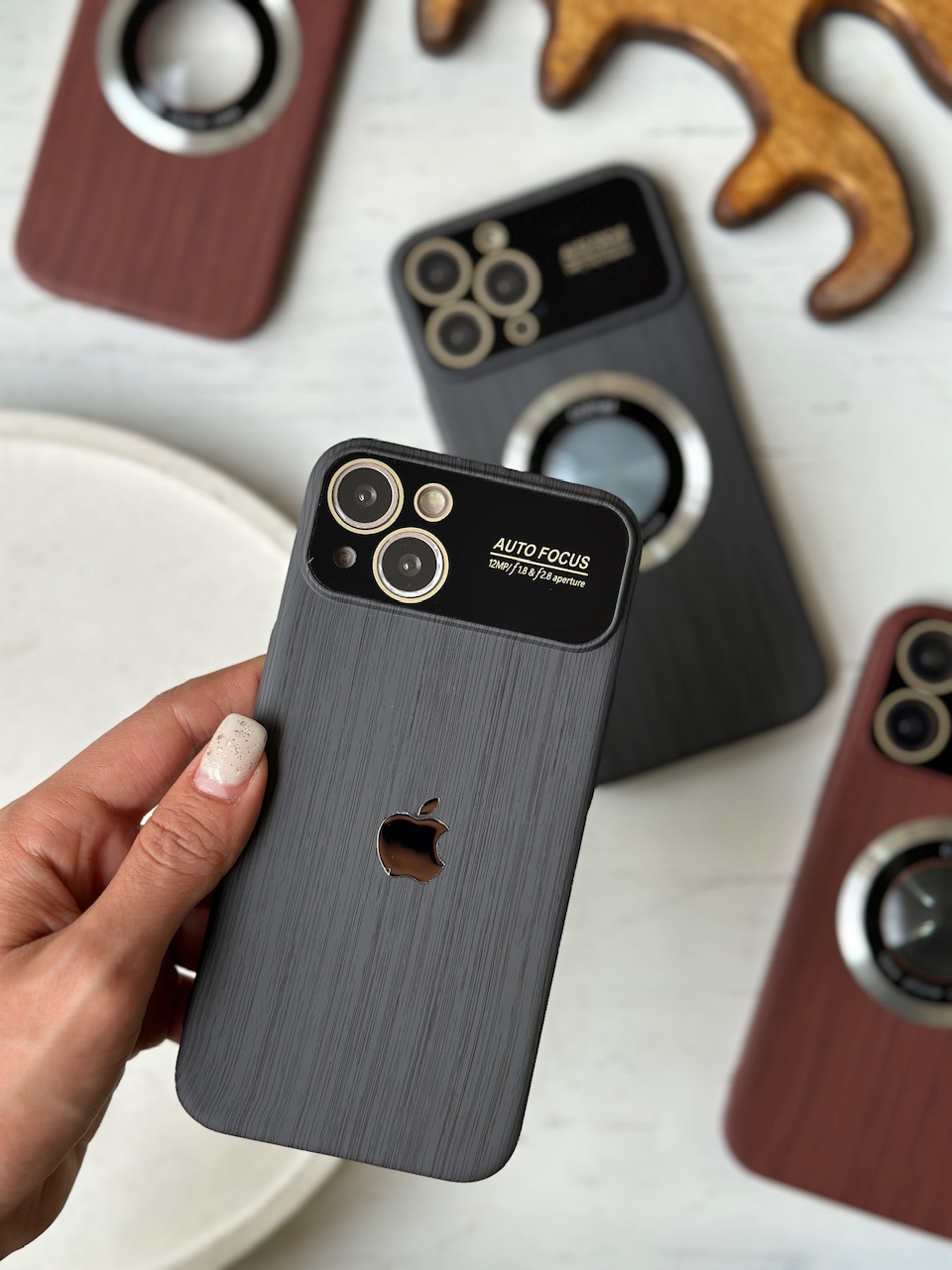 قاب طرح چوبی لوگو فلزی آیفون