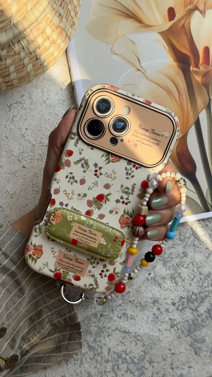 قاب موبایل موبایل آیفون استرابری گاردن + بند و استند ست