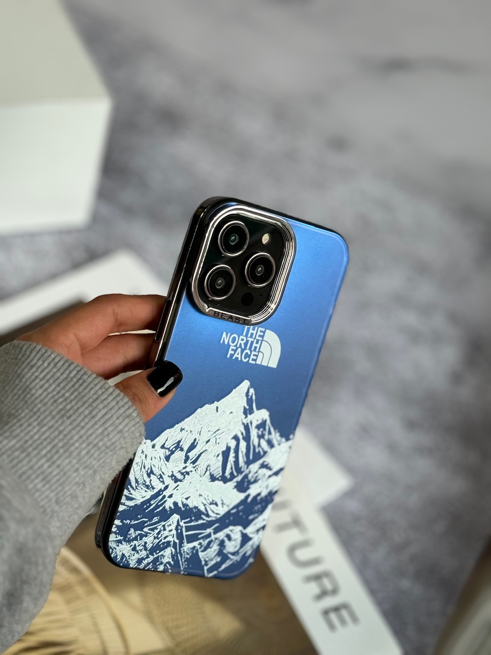 کیفیت اصلی، دور لنز و لبه های قاب طرح متال، رنگ پشت قاب هولوگرامی نیمه شفاف، رنگ کوه ها سفید، دکمه ها سیلیکونی