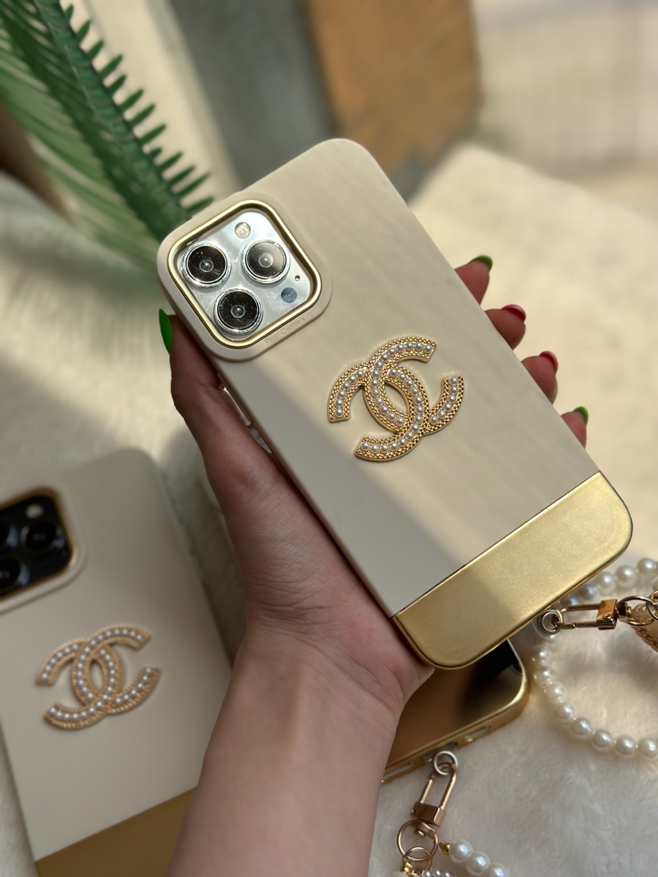 قاب Gold Chanel با آویز مرواریدی