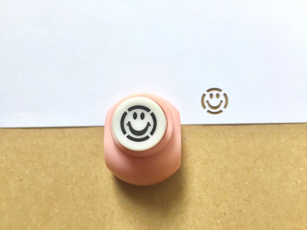 این پانچ کوچک طرح لبخند را به شکل تصویر روی کاغذ و مقوا برش می زند.